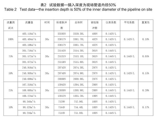 插入式蒸汽計(jì)量表插入深度為現(xiàn)場(chǎng)管道內(nèi)徑的 12.5%時(shí),試驗(yàn)數(shù)據(jù)如下(以 DN200 為例):