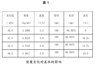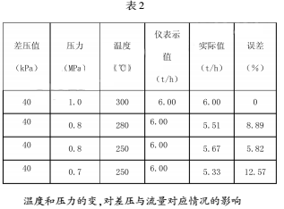 從表2中可以看出,在相同的差壓下,由于蒸汽的溫度和壓力的變化,即蒸汽密度的變化。相同的差壓所對應(yīng)的流量是不同的。*大變化量可達到12.57%。