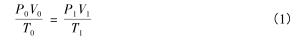 式中:P 0 ,P 1 分別為標準狀態(tài)下和工況下的絕對壓力(Pa);T 0 ,T 1 分別為標準狀態(tài)下和工況下的熱力學溫度(K);V 0 ,V 1 分別為標準狀態(tài)下和工況下的氣體體積。