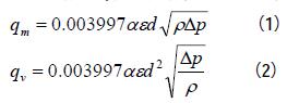 式中:mq為質(zhì)量流量,kg/h;vq為工況條件下的體積流量,m3/h ;為流量系數(shù);為流束膨脹系數(shù);p為差壓,Pa;為工況條件下被測(cè)流體的密度,kg/m3;d為工況條件下的節(jié)流開(kāi)孔直徑,mm。
