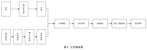 1.1 偏心爐+LF 爐雙聯(lián)冶煉工藝,鋼包冷調(diào)、熱裝一體化孔板流量計工藝路線圖簡介如圖 1。
