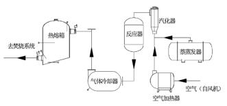 以原料萘為例。萘由原料儲罐經(jīng)液萘泵加壓后進入萘蒸發(fā)器,液萘在萘蒸發(fā)器內(nèi)由中壓蒸汽加熱汽化分離,經(jīng)流量調(diào)節(jié)閥、流量計和氣萘切斷閥后進入汽化器;空氣經(jīng)風機加壓后,經(jīng)空氣加熱器加熱后進入汽化器,氣萘和空氣在汽化器內(nèi)混合均勻后進入氧化反應器上部,經(jīng)催化床層發(fā)生氧化反應生成苯酐和少量的副產(chǎn)物(以順酐、苯甲酸、萘醌、和鄰苯二甲酰亞胺為主);反應氣體經(jīng)主蒸汽流量計冷卻后再進入切換冷凝器進行凝華捕集,少量未被捕集的有機物和不凝氣體經(jīng)尾氣管路進入蓄熱焚燒裝置焚燒處理,焚燒后的尾氣達標排放。