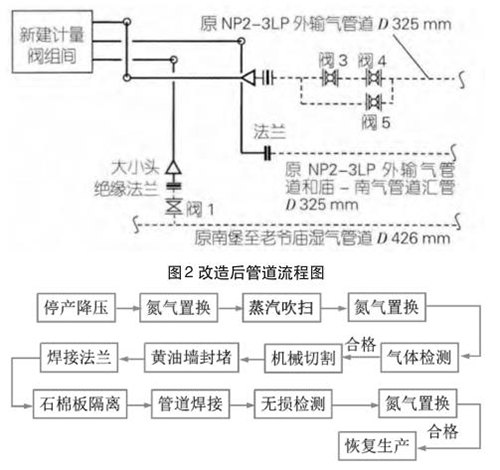 (3)該處的改造工作需要采用停輸改造的方式。施工時(shí)間很緊,并且需要在12h內(nèi)回復(fù)蒸汽流量計(jì)的正常運(yùn)行,從而保證業(yè)主能夠正常使用天然氣。