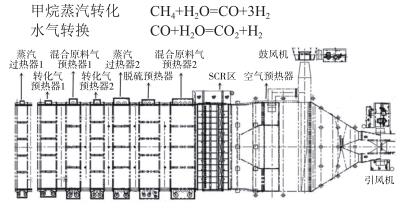 采用國(guó)內(nèi)某公司的選擇性催化還原法(SCR)脫硝裝置,按脫硝裝置入口 ** x 濃度120mg/m 3 ,出口 ** x 排放濃度不大于50mg/m 3 進(jìn)行設(shè)計(jì)和設(shè)備配置,SCR 反應(yīng)器按水平布置(見圖1),在壓縮空氣流量計(jì)好大工況下脫硝效率不小于58.34%。
