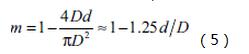 由于m為旋渦發(fā)生體兩側(cè)弓形面積與管道橫截面面積之比,按照渦街流量的通用設計,對三角柱形發(fā)生體,在d/D=0.28時漩渦發(fā)生的頻率信號*強,取d/D=0.28,根據(jù)m的計算式(4)得