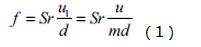式中:f為旋渦頻率,Hz;Sr為斯特勞哈爾數(shù);u1為發(fā)生體兩側(cè)的平均流速,m/s;d為發(fā)生體迎流面的寬度,m;u為被測介質(zhì)來流的平均流速,m/s;m為旋渦發(fā)生體兩側(cè)弓形面積與管道橫截面面積之比,不可壓縮流體中,由于流體密度ρ不變,由連續(xù)性方程可得到m=u/u1。