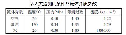 實驗條件下空氣、蒸汽、水為測試流體介質(zhì)時,各測試條件參數(shù)如表2所示。