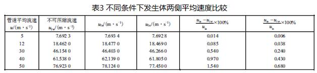 表3的后2列分別表示了空氣、蒸汽由于可壓縮性而引入的計量偏差,由計算數(shù)據(jù)可以得出,相同管道平均流速u的條件下,可壓縮介質(zhì)發(fā)生體兩側(cè)的流速均比不可壓縮流體的流速u1大,并且隨u的增大,引起的差值增大,u1的相對偏差也越來越大,在流速為50m/s時空氣由于可壓縮性可引起1.54%的偏差,蒸汽由于可壓縮性可引起0.68%的偏差,因此在渦街流量計的使用中需要考慮可壓縮介質(zhì)引起的影響。