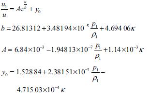 式中A、b、y0分別為與工況條件p、ρ、k相關(guān)的系數(shù)。對于其他工況下也用同樣的方法擬合,擬合度均不低于0.998。在擬合過程中得到不同工況下的系數(shù)A、b、y0,分別擬合這3個系數(shù)與不同工況條件p、ρ、k的多元函數(shù)得