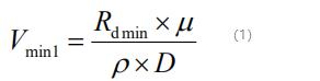 式中:Vmin1--基于雷諾數(shù)限制的工況流速下限,m/s;Rd min--為保證標(biāo)稱準(zhǔn)確度,所需非常小雷諾數(shù);μ--流體在工況下的動(dòng)力黏度,cP 或 mPa·s;ρ--流體工況密度,kg/m3;D--管道內(nèi)徑,mm。對于黏度高于1cP的液體流量檢測或小于DN40的小口徑規(guī)格的選用,應(yīng)不可省略雷諾數(shù)下限的核算。