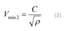 式中:Vmin2--基于信號處理系統(tǒng)增益及系統(tǒng)抗干擾能力的流速下限,m/s;C--常數(shù),由信號處理系統(tǒng)的增益及抗干擾能力共同決定 , 各產(chǎn)品存在明顯差異;ρ--流體工況密度,kg/m3。