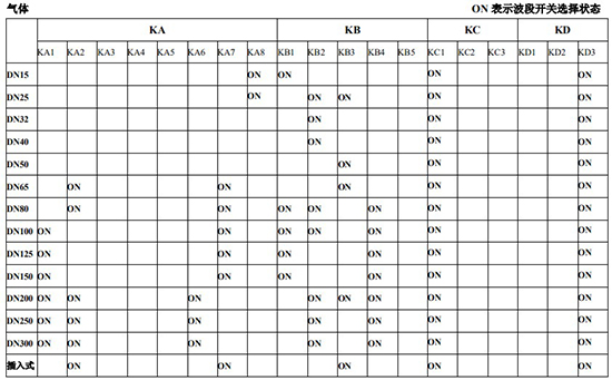 以上表值僅供參考,實際使用中因液體粘度和氣體密度不同應在此值附近調整,頻率低時可將 K3 向大口徑方向調一至三檔。頻率高時可將 K2 向小口徑方向調一至三檔。