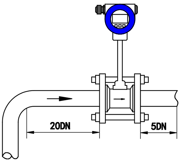 2、調(diào)節(jié)閥盡可能不安裝在液體渦街流量計(jì)的上游,而應(yīng)安裝在液體渦街流量計(jì)的下游10D處。
