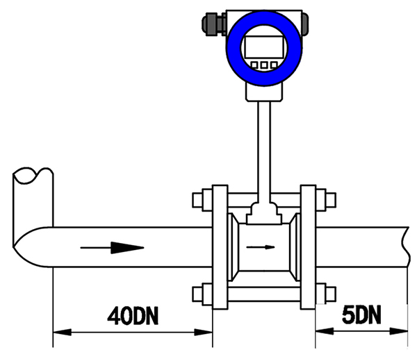 2、調(diào)節(jié)閥盡可能不安裝在空氣渦街流量計(jì)的上游,而應(yīng)安裝在空氣渦街流量計(jì)的下游10D處。