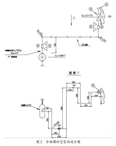 通過(guò)工程設(shè)計(jì)人員和運(yùn)行人員的溝通, 提出在冷凝罐對(duì)空管增加截止閥, 用于在檢修期間冷凝罐內(nèi)高溫蒸汽的排出。