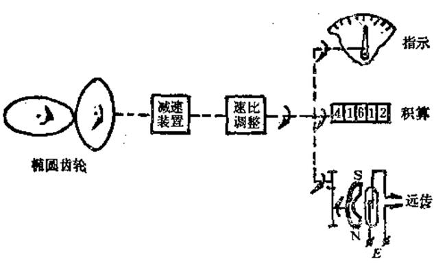 就地顯示將齒輪的轉(zhuǎn)動通過一系列的減速及調(diào)整轉(zhuǎn)速比機(jī)構(gòu)之后,直接與儀表面板上的指示針相連,并經(jīng)過機(jī)械式計(jì)數(shù)器進(jìn)行總量的顯示。
