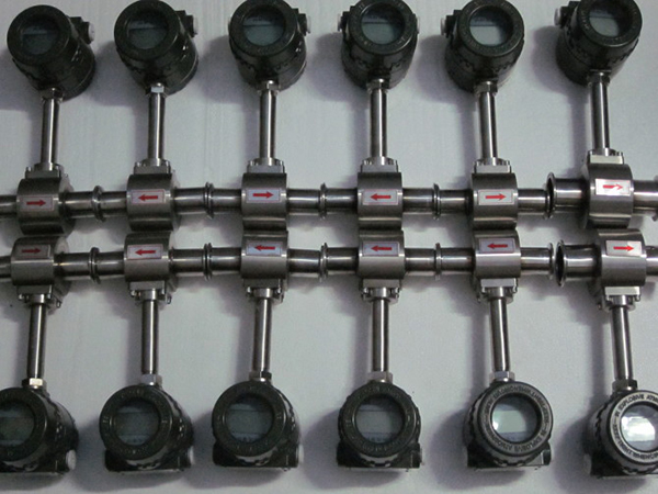 在流體管道中,垂直插入一個柱形阻擋物,在其后部(相對于流體流向)兩側就會交替地產生旋渦。隨著流體向下游流動形成旋渦列,我們稱之為卡門渦街。我們把產生旋渦的柱形阻擋物定義為旋渦發(fā)生體實驗證明,在一定條件下旋渦的分離頻率與流體的流速成線性關系。因而,只要檢測出旋渦分離的頻率,即可計算出管道內流體的流速或流量。渦街流量計即是根據(jù)這一原來制造。