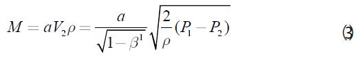 由于管道內(nèi)部流動(dòng)液體為不可壓縮液體,因此其p1=p2=p,根據(jù)流體定義確定質(zhì)量流量與差壓的關(guān)系是為: