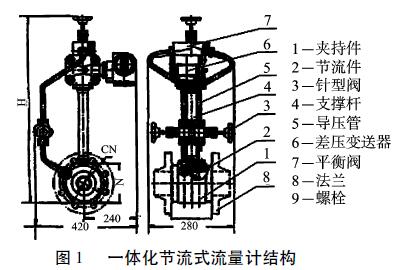 2.3.1一體化節(jié)流式流量計(jì)結(jié)構(gòu)和工作原理一體化節(jié)流式流量計(jì)結(jié)構(gòu),如圖1所示。