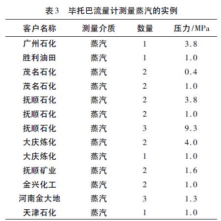 參照其他企業(yè)畢托巴流量計(jì)測量低壓蒸汽的成功經(jīng)驗(yàn),如表3所示,確定該低壓蒸汽計(jì)量采用的流量計(jì)為遼寧畢托巴科技有限公司生產(chǎn)的畢托巴蒸汽流量計(jì)。