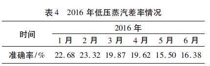 2015年11月上旬,利用公司停工檢修的機(jī)會,我們安裝了遼寧畢托巴科技有限公司生產(chǎn)的畢托巴蒸汽流量計(jì),經(jīng)過調(diào)試、組態(tài)等相關(guān)工作以后,至3月開始,蒸汽系統(tǒng)低壓蒸汽外供量以該計(jì)量表數(shù)據(jù)為準(zhǔn),表4為我公司2016年1-6月份蒸汽準(zhǔn)確率情況。