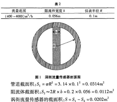 當(dāng)流量為400m³/h時(shí),此時(shí)氣體通過(guò)渦街流量傳感器的流速v: